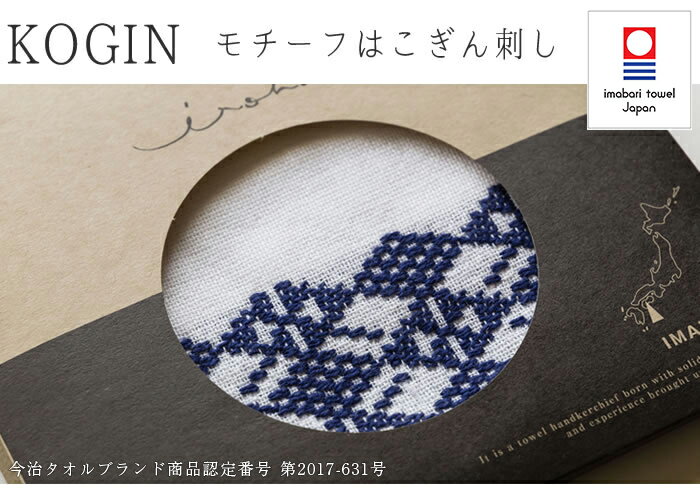 青森県の津軽に伝わる伝統技法の「こぎん刺し」をモチーフに 和の雰囲気と洋の雰囲気を持ち合わせたハンカチに仕上げました。